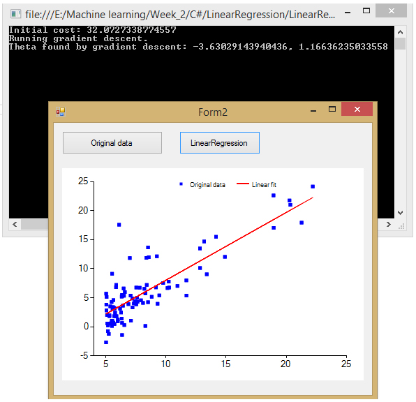 I took a machine learning course on Coursera. Prof. Andrew Ng offered a very interesting course. I like it a lot. I took the courses twice. The second time, I decided to rewrote Matlab codes using Python and C#.