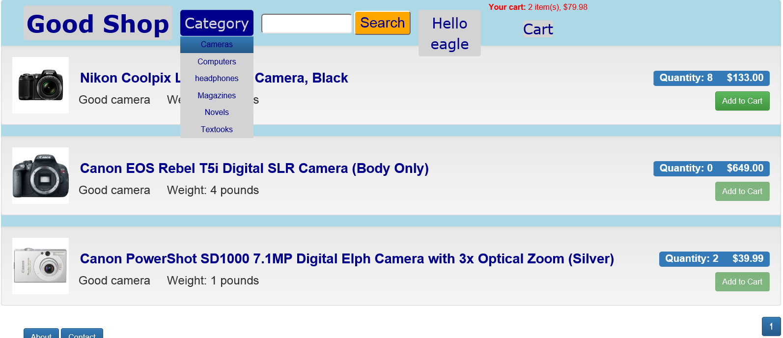 The online shopping demo was designed using MVC 5 (C#.net) and SQL Server. It has basic functions for online shopping, such as sign in, shopping cart, category, search, load and edit items as an administrator, and send an email to customers for registration and the order information when they successfully submit the orders, check order information. There are a lot of validations for this shopping system. The most important one is that it can prevent over purchases when the storage is low. It successfully disables the button when the quantity of the item in the database is 0 or the order quantity euqals the storage. It can update the shopping cart immediately when other people already made a purchase (only if the quantity in the shopping cart is larger than the storage in the database and it will be euqal to the quantity in the database). The customers cannot select the quantity larger than the storage in the shopping cart. If shopping cart is changed to 0, people cannot make a purchase. There are also a lot of other validations for sign in, shipping, payment etc.