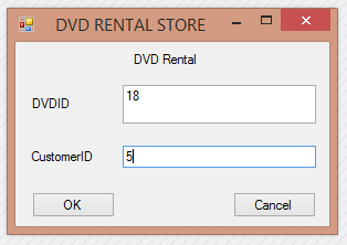 This prompt DVD rental system was desgined using C# and SQL Server. It can record every rental and return process, and save the new member to Table Customers. The only input is the scan of DVD and member card for rental, and the scan of DVD for return. It used two windows forms to accomplish this goal.